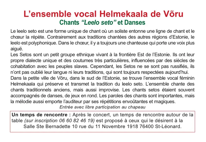 Polyphonie folklorique avec l’ensemble vocal féminin Helmekaala de Võru (Estonie)