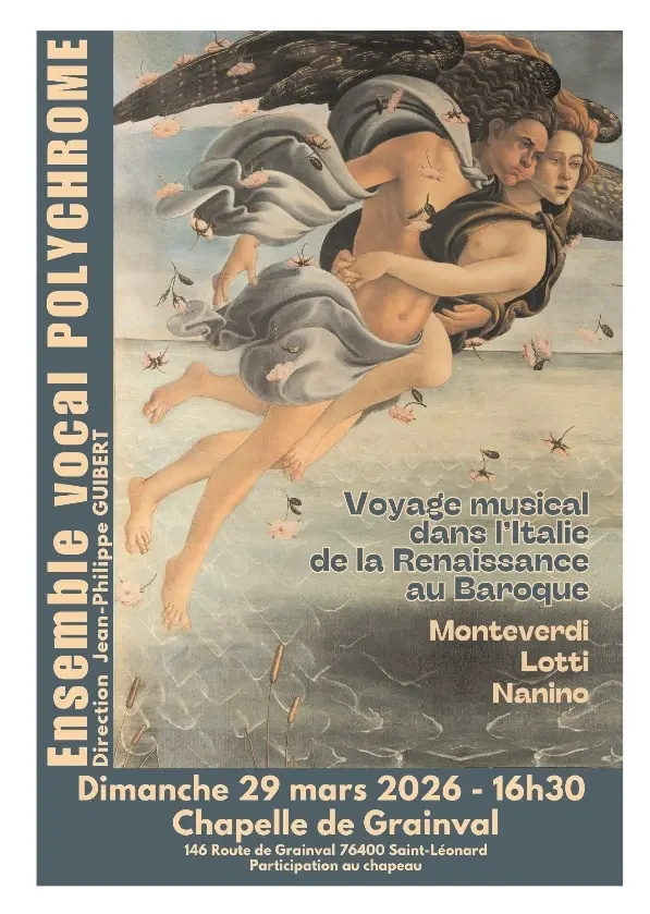 La chapelle de Grainval accueille l'Ensemble Vocal Polychrome. Au programme : Monteverdi, Lotti, Nanino.