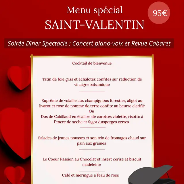 Au programme : concert piano-voix , menu spécial “Saint Valentin” et revue cabaret “Voyage- Voyage “